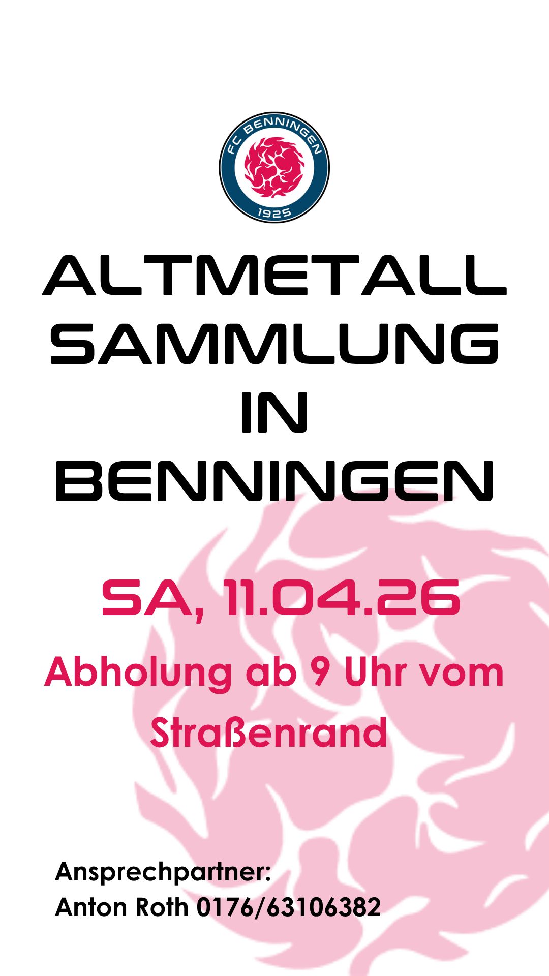 SV Memmingerberg auf FuPa Hier geht's zum FanshopMerch Hier geht's zum WebshopHundert Jahre FCB Dorfabende2026 Schrottsammlung11.04.2026 Die Story zum LogoGesamtvereinMitglied? Hier geht's zum Antrag SV Memmingerberg auf FuPa KontaktTriebweg 97, 87734 BenningenVorstandschaft:Marius MüllerSebastian MüllerFlorian SchwarzEmail: vorstand[at]fc-benningen.de